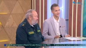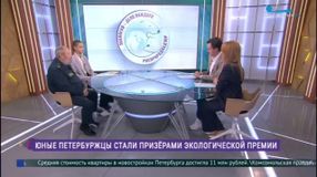 в студии программы «Утро в Петербурге» Борис Глушак, ученик 11 «А» класса нашей школы, призёр международной премии Росприроднадзора «Экология – дело каждого», и Михаил Козьминых, руководитель Северо-Западного управления Росприроднадзора.