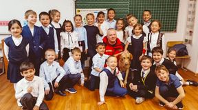 Сотрудник Министерства по Чрезвычайным Ситуациям вместе с верным товарищем провёл инструктаж для Первых классов!